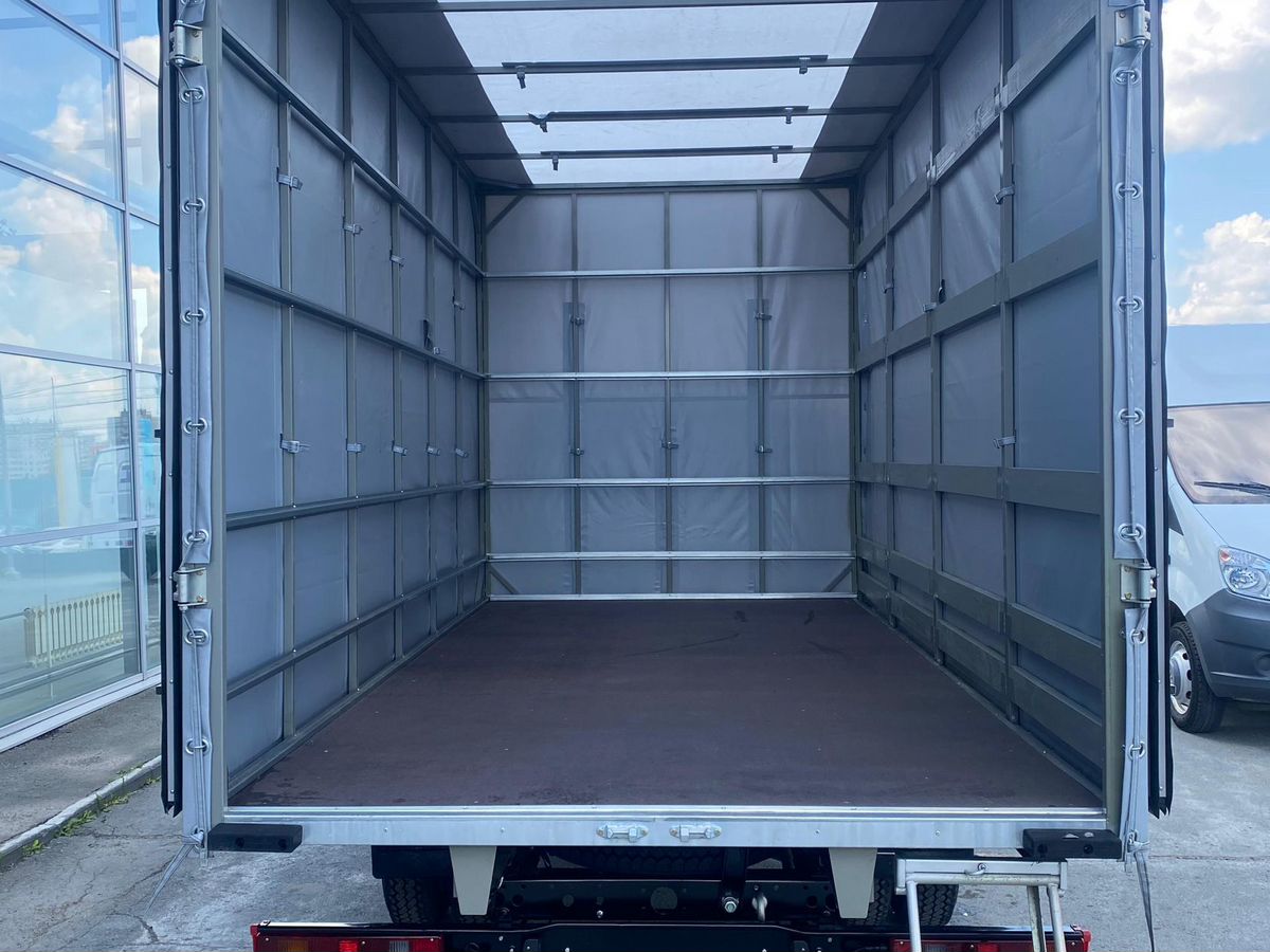 Откидная боковая шторка, съемная боковая перегородка, задние распашныеворота, без бортов, оцинкованная фурнитура, покрытие пола – оцинкованный лист, увеличенные размеры.